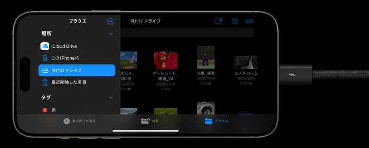 動画以外の使用方法としても、ファイルアプリからコンテンツの移動ができたりするのでバックアップ用途にも利用できるので最大容量の小さいiPhone Proシリーズを購入しても全然耐えられるようになると思います。