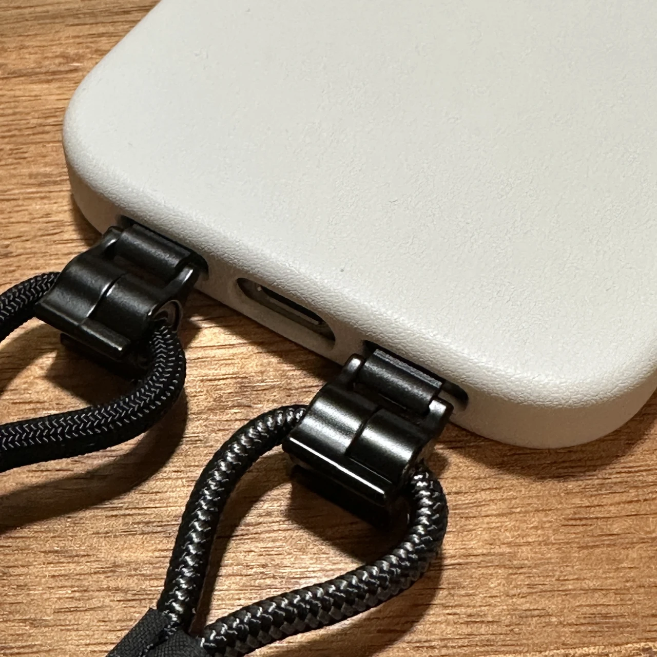 今回かたくなにUSB-C周りを見せなかったのは理由があり、私が買ったケースはLanyard Compatible VersionというiPhoneを斜めがけにすることができる仕様のケースを購入したため別項で語る必要があると判断したからでした。