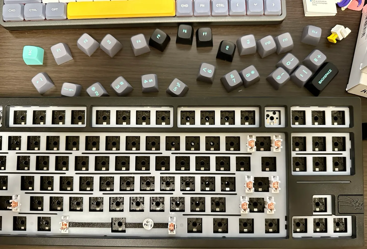 ただこのレイアウトとキーキャップの加工がとてもよくて触り心地は最高です。キーの配列も最高ですので、キースイッチだけはタクタイル静音に替えたいと思い、前回も購入したKailhのMidnight Silent V2のタクタイルのスイッチに換装しました。